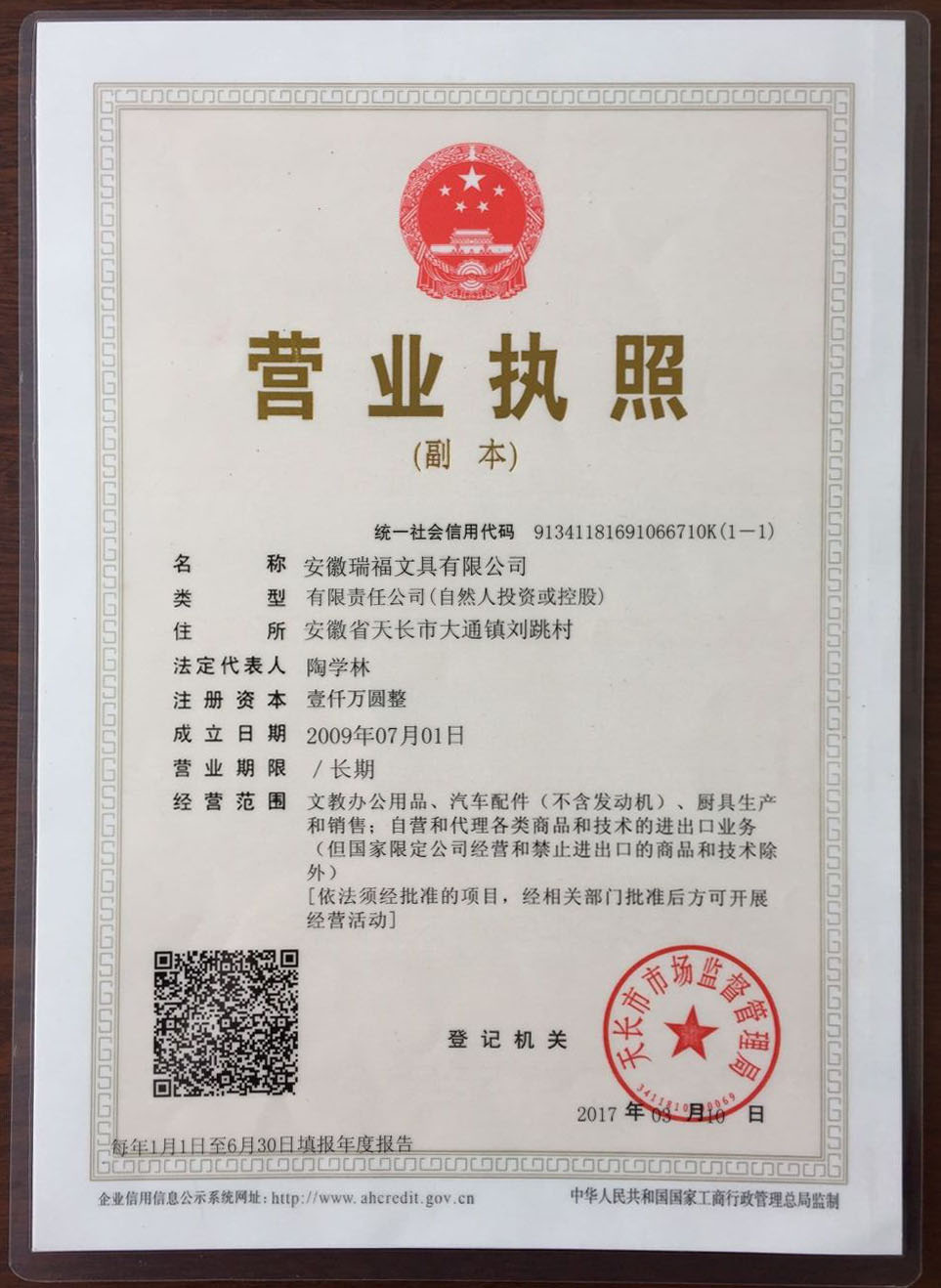 安徽瑞福文具有限公司成立于2009年,坐落于安徽省東大門,毗鄰南京和揚州的安徽省天長市